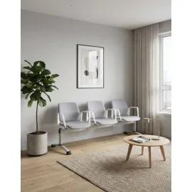 Biała ławka do poczekalni na korytarz z podłokietnikami z serii Aspen WT (o białym tworzywie) to nowoczesne i funkcjonalne rozwiązanie dostępne w wersjach dla dwóch, trzech i czterech osób. Ławki na korytarz posiadają biały kubełek oraz opracie i siedzisko tapicerowane w różnych rodzajach i kolorach tkanin, umożliwiając personalizację. Stelaże ławek występują w dwóch kolorach: czarny i szary, co pozwala na dopasowanie do różnych wnętrz. Idealne ławki do użytku w obiektach użyteczności publicznej, biurach oraz szkołach na korytarze i poczekalnie do przychodni, szpitali i gabinetów lekarskich czy salonów kosmetycznych.Linia krzeseł stacjonarnych oraz ławek - ASPEN - o nowoczesnym wzornictwie oferuje szerokie możliwości adaptacji przestrzeni publicznych i konferencyjnych. Dzięki bogatym opcjom konfiguracji można dopasować rodzaj i kolor stelaża, podłokietniki, formę tapicerowania oparcia oraz rodzaj bazy krzeseł stacjonarnych. Ergonomiczna konstrukcja i wysoka jakość wykonania zapewniają wygodę oraz trwałość, a nowoczesny design podkreśla charakter każdego wnętrza. Kolekcja ta stanowi idealne połączenie estetyki i funkcjonalności, odpowiadając na potrzeby współczesnych użytkowników.