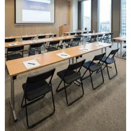 Krzesło POLYFOLD PLUS to atestowane, solidne krzesło składane z miękkimi, tapicerowanymi nakładkami na siedzisko i oparcie. Krzesło składane z przeznaczeniem do pomieszczeń użyteczności publicznej o miękkim, tapicerowanym elemencie w siedzisku i oparciu krzesła. Wytrzymale i bardzo solidne krzesła POLYFOLD PLUS składane idealne na każdą okazję. Krzesła składane łatwe do utrzymania w czystości.