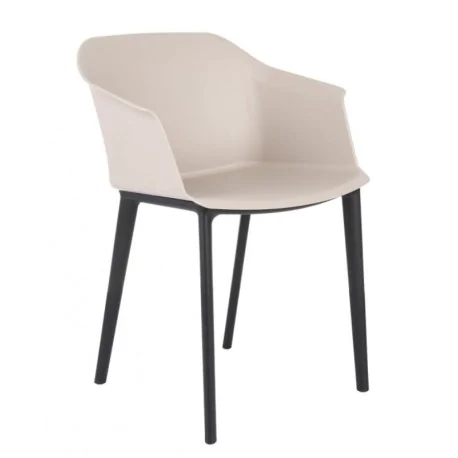 Nowoczesna linia wygodnych krzeseł kawiarnianych, restauracyjnych wykonana z trwałego polipropylenu - dzięki czemu może być także stosowane na zewnątrz na przykład w przydomowym ogrodzie. Krzesło Nado to model w całości wykonany z polipropylenu (mocnego tworzywa/ plastiku), dzięki czemu łatwo utrzymać go w czystości. Zabrudzone miejsce wystarczy przetrzeć wilgotną ściereczką przez co bardzo dobrze sprawdza się w miejscach takich jak kawiarnia, recepcja czy lobby, a także jadalnia i salon. Kubełek siedziska występuje w 4 kolorach tj. czarny, biały, beżowy oraz pudrowy róż. Oparcie krzesła jest profilowane wraz z wygodnymi podłokietnikami, a których możemy wygodnie oprzeć ręce. Dół krzesła tworzą 4 nóżki dostępne w kolorze czarnym zakończone stopkami, zabezpieczającymi przed zarysowaniem podłoża.
