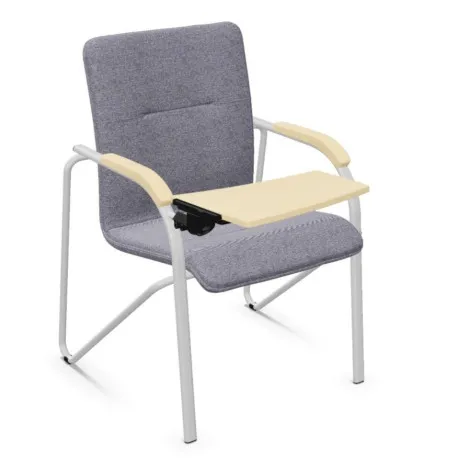 Krzesło biurowe, krzesło konferencyjne SAMBA TR z pulpitem do pisania - idealnie pasuje do sal wykładowych i konferencyjnych. Krzesło biurowe SAMBA TR o profilowanym oparciu. Krzesło konferencyjne SAMBA TR posiada wygodne podłokietniki z nakładkami z nakładkami z drewna. Krzesło posiada drewniany, składany pulpit do pisania. Krzesło wykonane na mocnej, stabilnej ramie malowanej proszkowo na kolor czarny lub ALU bądź stelaż chromowany (błyszczący).