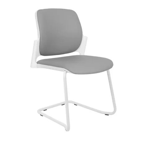 Białe konferencyjne krzesło Aspen V WT na płozie firmy Grospol o białym tworzywie i tapicerowanym oparciu i siedzisku. Aspen to nowoczesne rozwiązanie do biur, przestrzeni edukacyjnych i sal konferencyjnych. Stelaż krzesła dostępny jest w 2 kolorach: białym oraz chromowanym, co pozwala na dopasowanie do różnych stylów wnętrz. Oparcie i siedzisko jest miękkie i tapicerowane jedną z wielu tkanin, oferujących różne kolory i tekstury. Krzesło na metalowej płozie, wyposażone w stopki zabezpieczające podłogę przed zarysowaniem. Krzesło Aspen 4L V można sztaplować (nakładać jedno na drugie), co ułatwia przechowywanie, a także połączyć w rzędy za pomocą specjalnych łączników (opcja dodatkowa za dopłatą). Krzesło posiada certyfikaty bezpieczeństwa EN 16139:2013 oraz Ansi-Bifma, co potwierdza jego jakość i niezawodność.