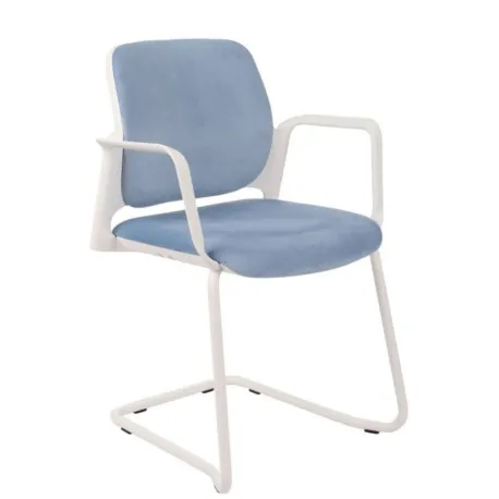 Białe konferencyjne krzesło Aspen V WT ARM na płozie z podłokietnikami firmy Grospol o białym tworzywie i tapicerowanym oparciu i siedzisku. Aspen to nowoczesne rozwiązanie do biur, przestrzeni edukacyjnych i sal konferencyjnych. Stelaż krzesła dostępny jest w 2 kolorach: białym oraz chromowanym, co pozwala na dopasowanie do różnych stylów wnętrz. Oparcie i siedzisko jest miękkie i tapicerowane jedną z wielu tkanin, oferujących różne kolory i tekstury. Krzesło na metalowej płozie, wyposażone w stopki zabezpieczające podłogę przed zarysowaniem. Krzesło Aspen 4L V ARM można sztaplować (nakładać jedno na drugie), co ułatwia przechowywanie, a także połączyć w rzędy za pomocą specjalnych łączników (opcja dodatkowa za dopłatą). Krzesło posiada certyfikaty bezpieczeństwa EN 16139:2013 oraz Ansi-Bifma, co potwierdza jego jakość i niezawodność.