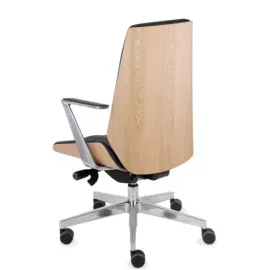 Elementem wyróżniającym fotel Moon Wood CF HD z zagłówkiem firmy Grospol jest wykończenie oparcia oraz siedziska wykonane z wysokiej jakości forniru dębowego, który w odróżnieniu od standardowych syntetycznych oklein jest materiałem naturalnym. Dzięki niemu fotel zyskał bardzo nowoczesny i ekskluzywny wygląd oraz charakterystyczne dla drewna usłojenie. Fotel konferencyjny Moon Wood CF firmy Grospol to stylowy, designerski i ponadczasowy model, wyróżniający się precyzyjnym wykonaniem i najwyższą jakością zastosowanych materiałów. Drewniane wykończenie bryły w połączeniu z tapicerowanym i wyraźnie ergonomicznie profilowanym oparciem i siedziskiem, uzupełnione jest o aluminiową podstawę i podłokietniki. Całość tworzy spójną kompozycyjnie całość. Fotel konferencyjny Moon Wood CF wyposażony jest w precyzyjny mechanizm Tilt, umożliwiający swobodne kołysanie, a także regulację wysokości siedziska, łącząc ergonomię z wysokim komfortem użytkowania. Możliwość zastosowania fotela konferencyjnego Moon Wood CF z obecnym w ofercie fotelem biurowym Moon Wood utrzymanym w tej samej stylistyce, pozwala kompleksowo zaaranżować wnętrze. Szeroki wybór tkanin i wybarwień drewna umożliwia zaprojektowanie fotela dopasowanego do indywidualnych potrzeb.