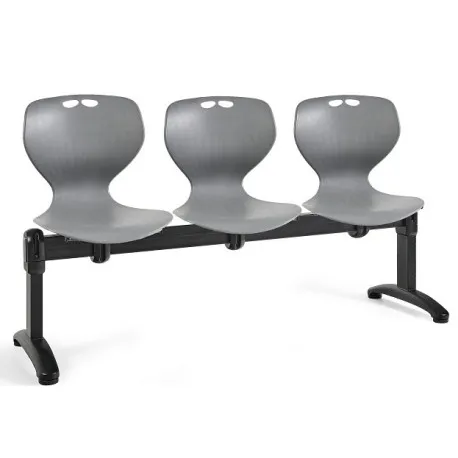 Plastikowa ławka MATA 3-osobowa o kubełku wykonanym z mocnego tworzywa PP stanowią integralną całość. Ławka z przeznaczeniem do pomieszczeń biurowych, poczekalni, recepcji, restauracji, audytoriów. Siedziska plastikowe dostępne w 2 kolorach: szary lub niebieski. Stelaż ławki metalowy, malowany proszkowo na kolor czarny. Zobacz także specjalne krzesła Mata do poczekalni. Kubełek krzesła posiada specjalny uchwyt w górnej części oparcia.
