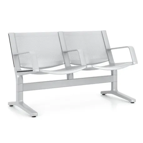 Metalowa ławka 2-osobowa o oparciu i siedzisku wykonanym ze stali perforowanej. Belka ławki wykonana zawsze z aluminium malowanego proszkowo na kolor RAL9006. Nogi ławki oraz rama siedziska wykonana do wyboru z aluminium malowanego proszkowo na kolor RAL9006 lub z polerowanego aluminium. Siedzenia publiczne charakteryzujące się nowym językiem projektowania estetycznego. Wyjątkowa synteza inżynierii i designu, która daje skrzydła Twojej wyobraźni i inspiracji. Czysta, mocna, progresywna. Seria ławek zaprojektowana tak, aby zapewnić jak najlepszy komfort wszystkim pasażerom. Skierowana do międzynarodowych lotnisk, centrów wycieczkowych, stacji kolejowych i innych miejsc publicznych.