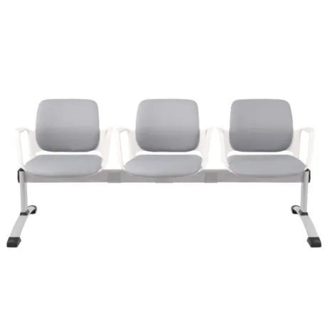 Biała ławka do poczekalni na korytarz z podłokietnikami z serii Aspen WT (o białym tworzywie) to nowoczesne i funkcjonalne rozwiązanie dostępne w wersjach dla dwóch, trzech i czterech osób. Ławki na korytarz posiadają biały kubełek oraz opracie i siedzisko tapicerowane w różnych rodzajach i kolorach tkanin, umożliwiając personalizację. Stelaże ławek występują w dwóch kolorach: czarny i szary, co pozwala na dopasowanie do różnych wnętrz. Idealne ławki do użytku w obiektach użyteczności publicznej, biurach oraz szkołach na korytarze i poczekalnie do przychodni, szpitali i gabinetów lekarskich czy salonów kosmetycznych.Linia krzeseł stacjonarnych oraz ławek - ASPEN - o nowoczesnym wzornictwie oferuje szerokie możliwości adaptacji przestrzeni publicznych i konferencyjnych. Dzięki bogatym opcjom konfiguracji można dopasować rodzaj i kolor stelaża, podłokietniki, formę tapicerowania oparcia oraz rodzaj bazy krzeseł stacjonarnych. Ergonomiczna konstrukcja i wysoka jakość wykonania zapewniają wygodę oraz trwałość, a nowoczesny design podkreśla charakter każdego wnętrza. Kolekcja ta stanowi idealne połączenie estetyki i funkcjonalności, odpowiadając na potrzeby współczesnych użytkowników.