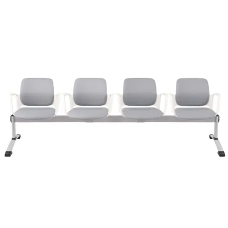 Biała ławka na korytarz z podłokietnikami do przychodni z serii Aspen WT firmy Grospol to nowoczesne i funkcjonalne rozwiązanie dostępne w wersjach dla dwóch, trzech i czterech osób. Ławki na korytarz posiadają biały kubełek oraz opracie i siedzisko tapicerowane w różnych rodzajach i kolorach tkanin, umożliwiając personalizację. Stelaże ławek występują w dwóch kolorach: czarnym i szarym, co pozwala na dopasowanie do różnych wnętrz. Idealne ławki do użytku w obiektach użyteczności publicznej, biurach oraz szkołach na korytarze i poczekalnie do szpitali i gabinetów lekarskich czy kosmetycznych.Linia krzeseł stacjonarnych oraz ławek - ASPEN - o nowoczesnym wzornictwie oferuje szerokie możliwości adaptacji przestrzeni publicznych i konferencyjnych. Dzięki bogatym opcjom konfiguracji można dopasować rodzaj i kolor stelaża, podłokietniki, formę tapicerowania oparcia oraz rodzaj bazy krzeseł stacjonarnych. Ergonomiczna konstrukcja i wysoka jakość wykonania zapewniają wygodę oraz trwałość, a nowoczesny design podkreśla charakter każdego wnętrza. Kolekcja ta stanowi idealne połączenie estetyki i funkcjonalności, odpowiadając na potrzeby współczesnych użytkowników.