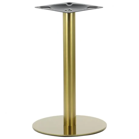 Podstawa stolika SH-3001-5/G złota wykonana ze stali nierdzewnej w kolorze złotym o dolnej bazie o rozmiarze fi-45cm. Nakładka dolnej bazy wykonane ze stali nierdzewnej, a obciążnik ze stali o grubości 7mm. Kolumna podstawy wykonana ze stali nierdzewnej o rozmiarze fi-7,6cm o grubości ścianki 1,2mm. Noga do stołu PS-3001 posiada regulowane stopki.