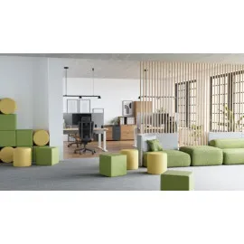 W pufie zostały zastosowane pianki tapicerskie polskiego producenta o gęstości odpowiednio: boki pufy: 25 kg/m³ siedzisko: 35 kg/m³. Pianki tapicerskie posiadają certyfikat Ekologiczny Oeko-Tex. Dodatkowo w celu zwiększenia komfortu, pomiędzy pianką a tkaniną stosujemy warstwę owaty tapicerskiej, dzięki której puf staje się bardziej miękki i przyjemny w użytkowaniu.
